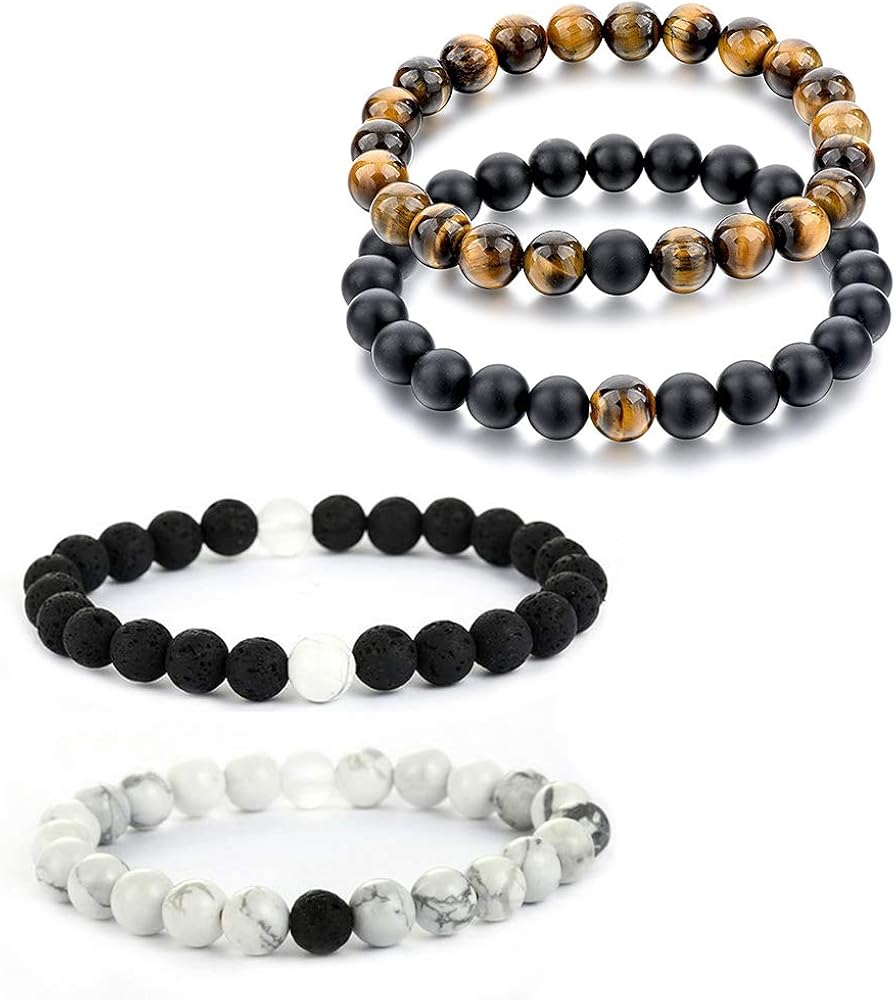 Rainbabe 2pcs Bracelet Pierre Naturelle Femme Yoga Accessoire Perles Pierres Cadeau Noel Anniversaire Original Cadeau Original Anniversaire Femme Bracelets