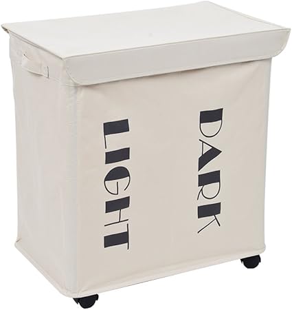 Rangement Et Organisation Bakaji Panier A Linge A 3 Compartiments A Linge 3 Espaces En Tissu Oxford Pliant Avec Roues Et Poignees Dimension 63 X 35 X 57 Cm Creme Cuisine