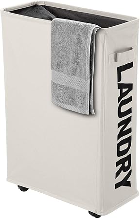 Ihomagic Panier A Linge Sur Roulettes Tissu Pliable Slim Beige Corbeilles A Linge Buanderie