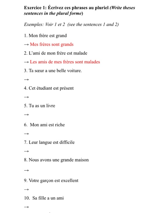 Exercice 1 Ecrivez Ces Phrases Au Pluriel Write Chegg Com