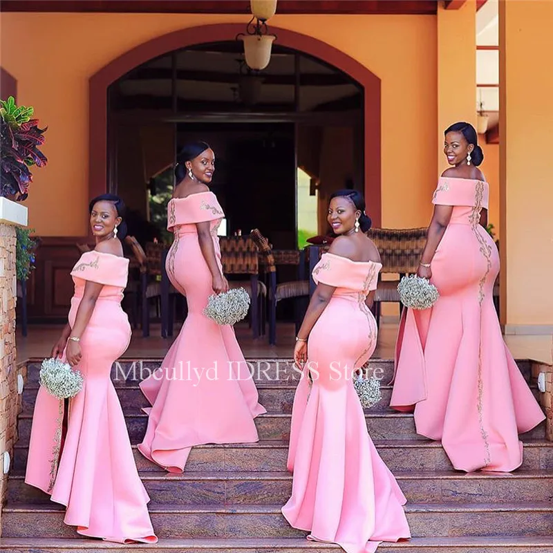 Acheter Robes De Demoiselles Dhonneur Africaines 2 Sirene Hors De Lepaule Bretelles Spaghetti Robes De Soiree De Mariage Peplum Satin Demoiselle Dhonneur Robe Robes De 76 92 Du Sweety Wedding Dhgate Com
