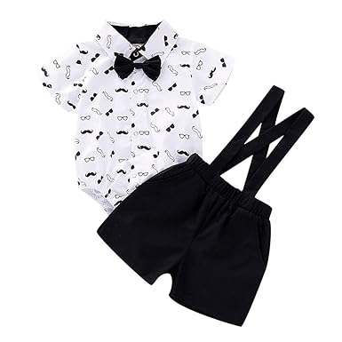 Ensemble Bebe Garcon Naissance Bapteme Ceremonie Ete Day8 Vetement Bebe Garcon 0 4 Ans Outfits Tenue Mariage Garcon Gentleman Costume Chemise Manche Courte Noeud Papillon Shorts Bretelles Ensembles Bebe Puericulture