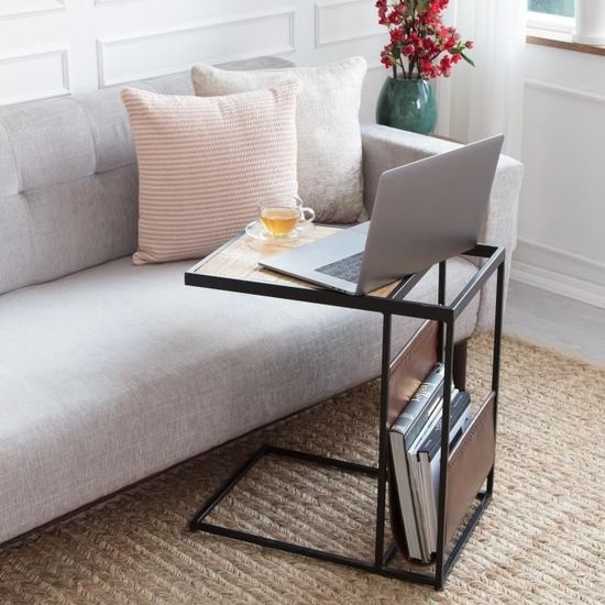 Table D Appoint Bout De Canape Metal Noir Et Bois