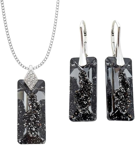 Crystals Stones Magnifique Parure De Bijoux Exclusive Rectangulaire Argentee 925 Jolies Boucles D Oreilles Et Collier Avec Cristaux Swarovski Elements Amazon Fr Bijoux