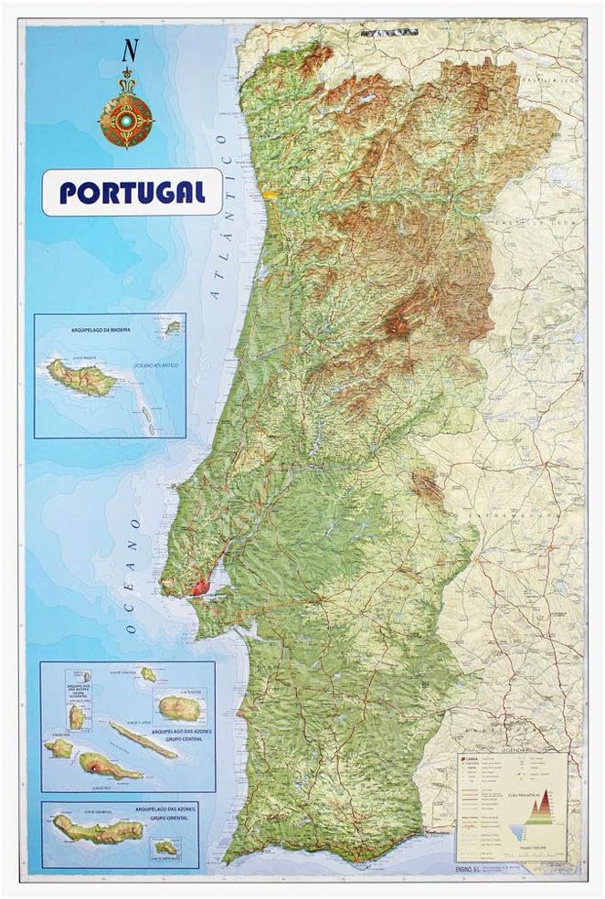Portugal Map With Relief Amazon De Burobedarf Schreibwaren
