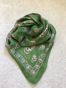 Alexander mcqueen scarf. Alexander McQueen Newsletter Sign up for alexandermcqueencom updates to receive information about new arrivals, future events and special projects The data fields with an asterisk ( * ) must be completed in order to satisfy any request you make. Green, blue and black Alexander McQueen 100% silk scarf featuring skull and chains motif throughout and handrolled edges Size 35"x35" Condition Excellent Minimal Signs of Wear. Exuding cool yet flying high with elegance, Alexander McQueen ladies’ scarves are just what you need to complete your look with a little added finesse Famed across the globe and adored by those in the know, the skull print iterations are especially coveted, signalling sartorial savviness all the way.