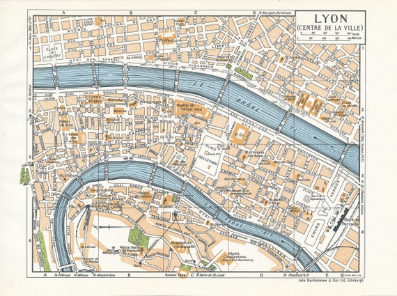 Old Map Of Lyon Etsy