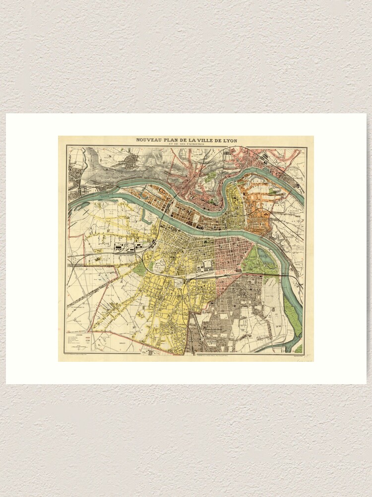 Vintage Map Of Lyon France 1913 Art Print By Bravuramedia Redbubble