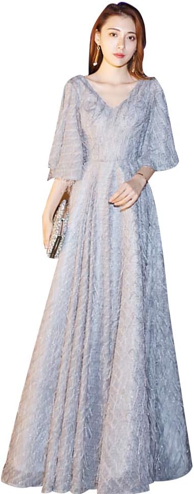 Robe De Demoiselle D Honneur De Mariage Longue Section Robe De Soiree D Hiver Plume Col V Ailin Home Couleur Gray Taille S Amazon Fr Cuisine Maison