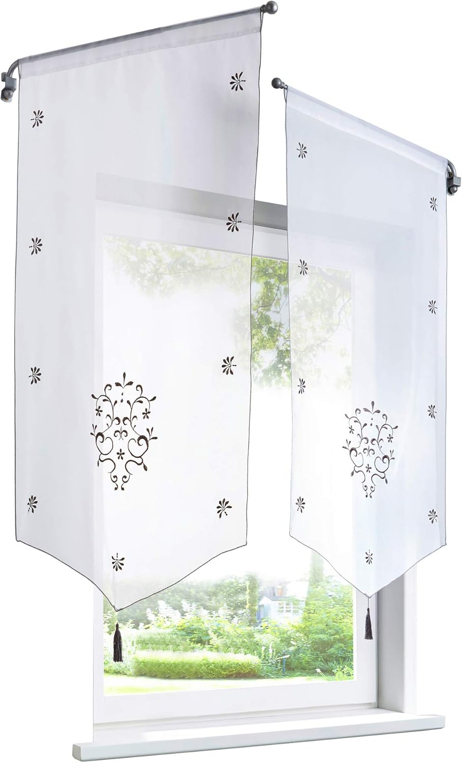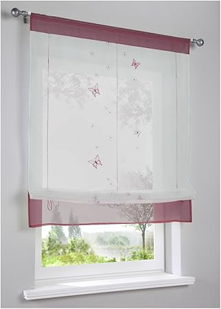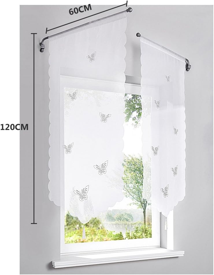 Necohome Store Romain Brise Bise Rideau Voilage 1pc Raffrollo Transparent Avec Papillon Broderie Decoration De Fenetre Stores Enrouleurs Cuisine Maison