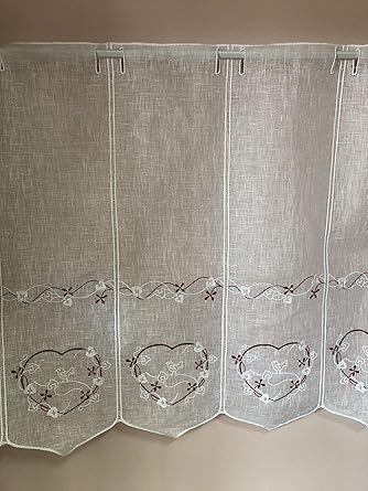 Rideaux Voilage Brise Bise Poly Lin Blanc Brode Coeur Rouge Amazon Fr Commerce Industrie Science