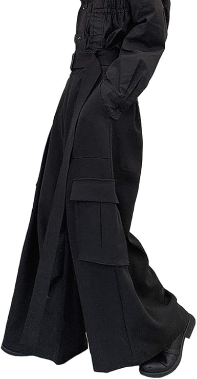 Homme Taille Haute Jambe Large Pantalon Ample Gothique Poche Kendo Hakama Pantalon Noir Ebay