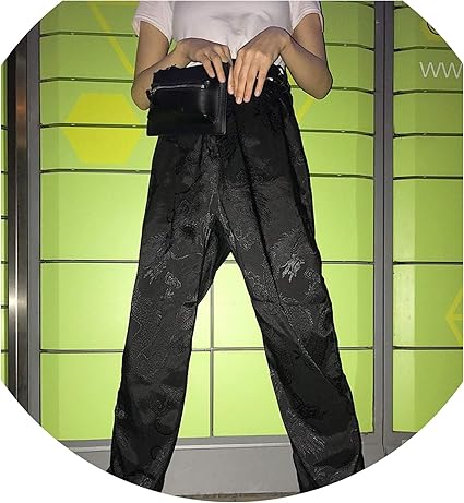 Oh Why Pantalon Large En Satin Avec Broderie Dragon Taille Haute Style Decontracte Pour Homme Et Femme Noir Taille L Amazon Fr Vetements Et Accessoires