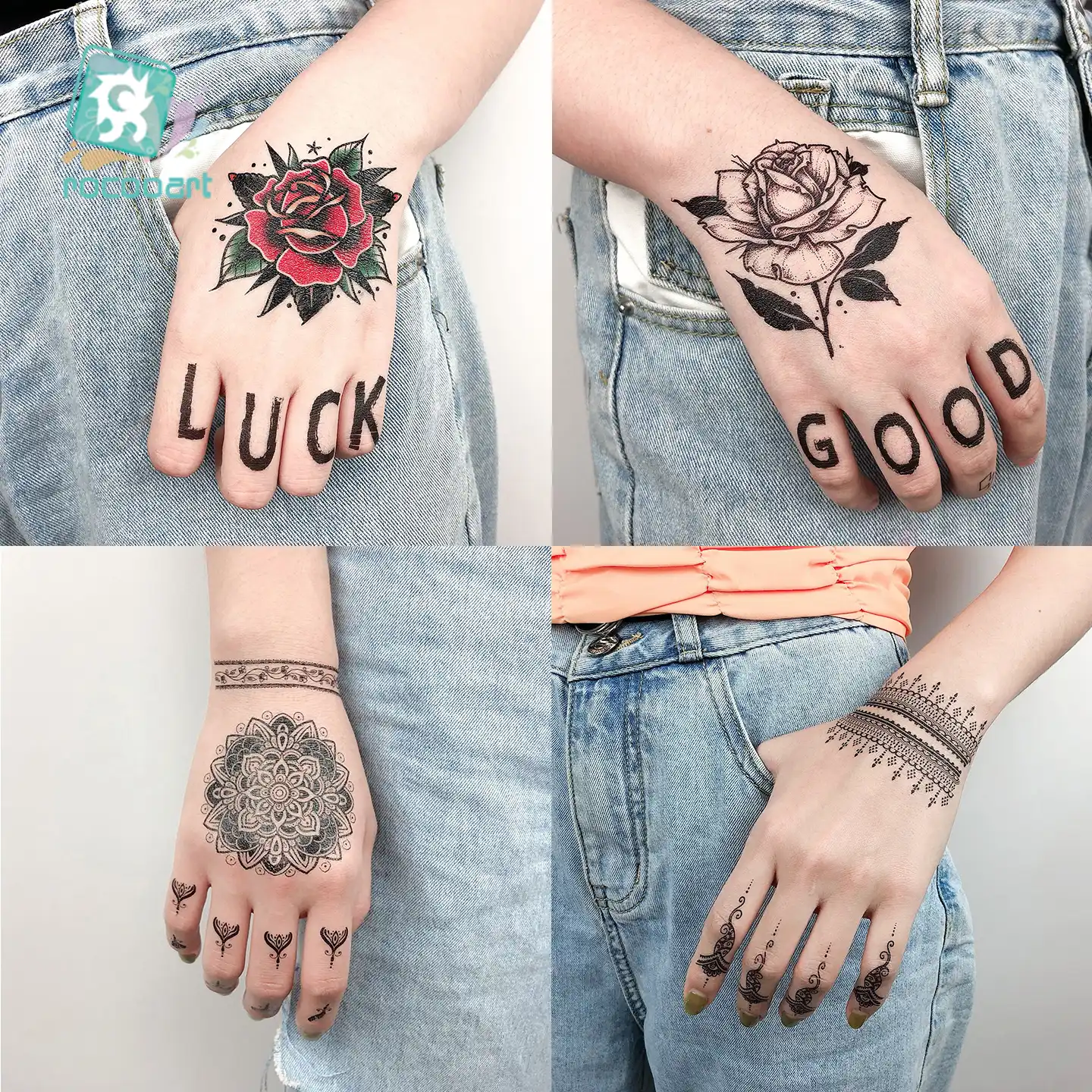 Rocooart Noir Henne Doigt Tatouages Bracelet Inde Mandala Fleur Temporaire Tatouage Mehndi Femmes Corps Autocollants Sexy Tatouage Art Aliexpress