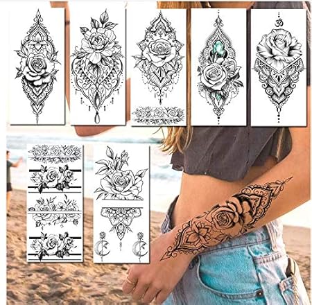 6 Pcs Realiste Faux Bijoux Temporaire Tatouages Autocollant Pour Les Femmes Sexy Etanche Blossom Bracelet Mandala Fleur Rose Tatouages Decal A10 Amazon Fr Beaute Et Parfum