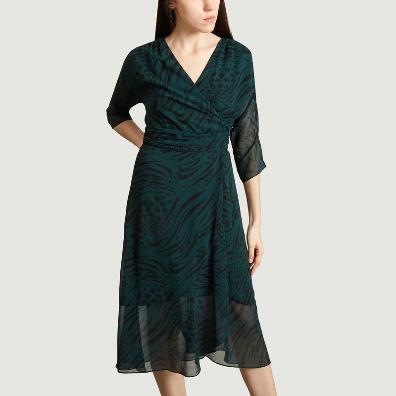 Soldes Robe En Voile Imprime Peacok All Over Green Club Ikks Femme Place Des Tendances