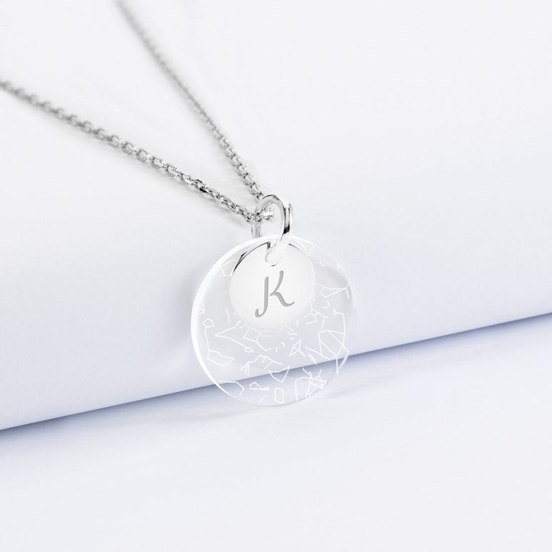 Pendentif Carte Du Ciel Etoile Personnalise Medailles Double Gravees 10 Mm Argent Et Mm Acrylique