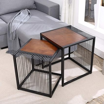 Meubles De Decoration Interieure Lot De 2 Ancien Table Gigogne Dessus En Bois Cadre En Fer Forge 40x40x45cm 45x45x50cm Salon Amazon Fr Cuisine Maison