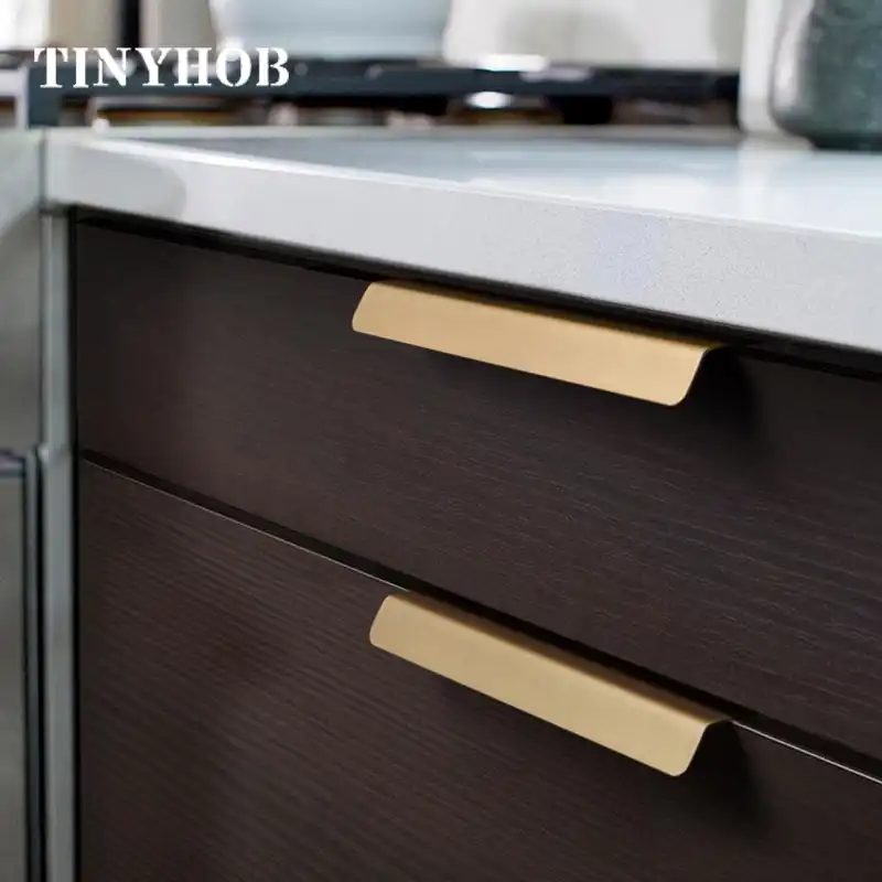 Poignees Et Boutons D Armoire Probrico Poignees De Meubles En Laiton Dore Poignees De Porte De Cuisine Longues Aliexpress