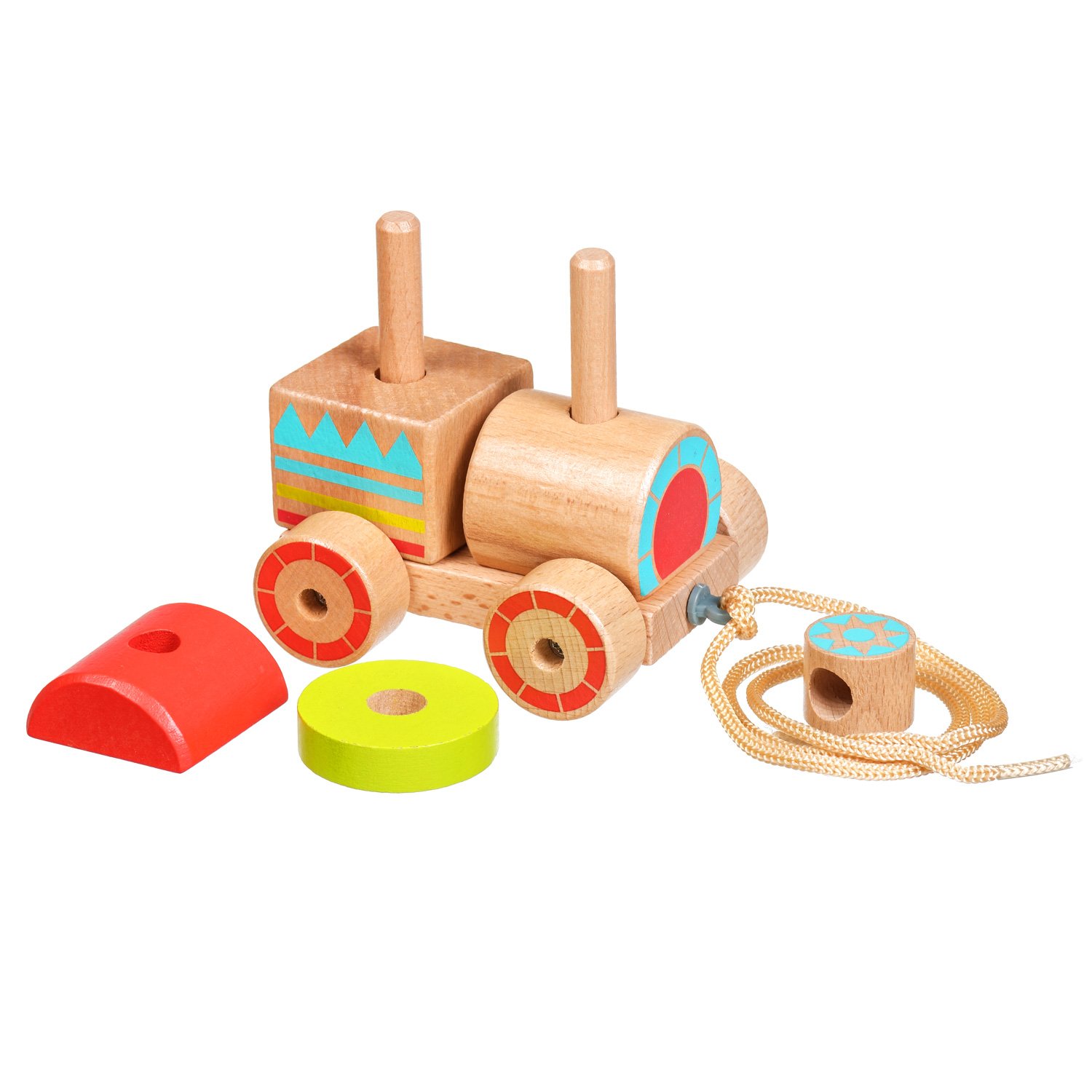 Lucy Leo Empileur Train Poussez Et Tirez Le Long Educatif Jouet En Bois Pour Tout Petits Pour Bebe Garcon Et Bebe Fille Formes A Trier Et A Empiler Bebe Puericulture