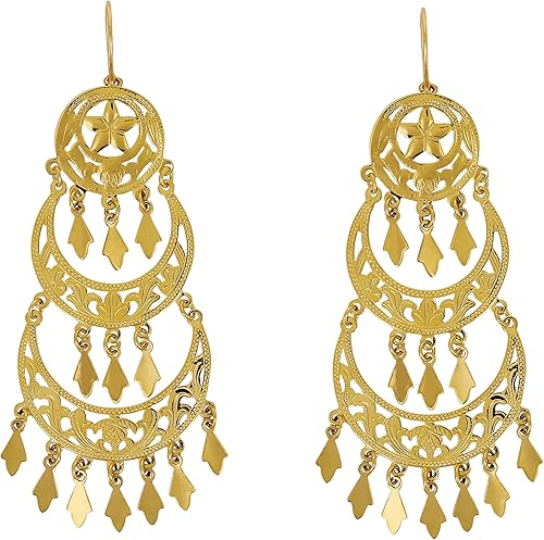 Boucles D Oreilles Orientales 3 Etages En Or 18 Carats Amazon Fr Bijoux