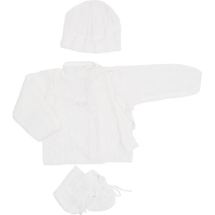 Trousseau De Naissance Ivoire Creme Tricote Main En 100 Laine Merinos