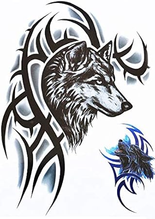 Elenxs Femmes Hommes Transfert D Eau Faux Tatouage Tete De Loup Bras Etanche Corps Temporaire Jambe Art Autocollant Amazon Fr Cuisine Maison