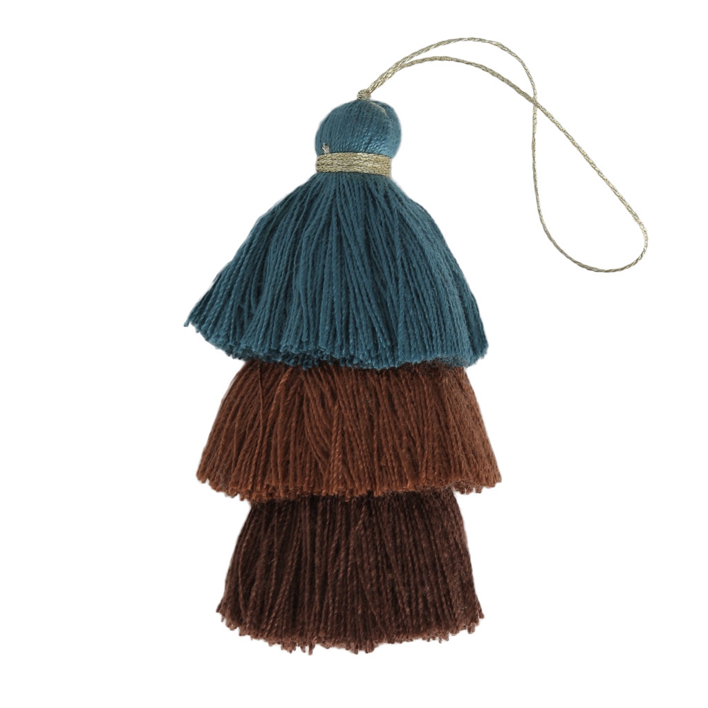 Grand Pompon Triple Imitation Coton 7 Cm Bleu Canard Multi Marron X1 Perles Co