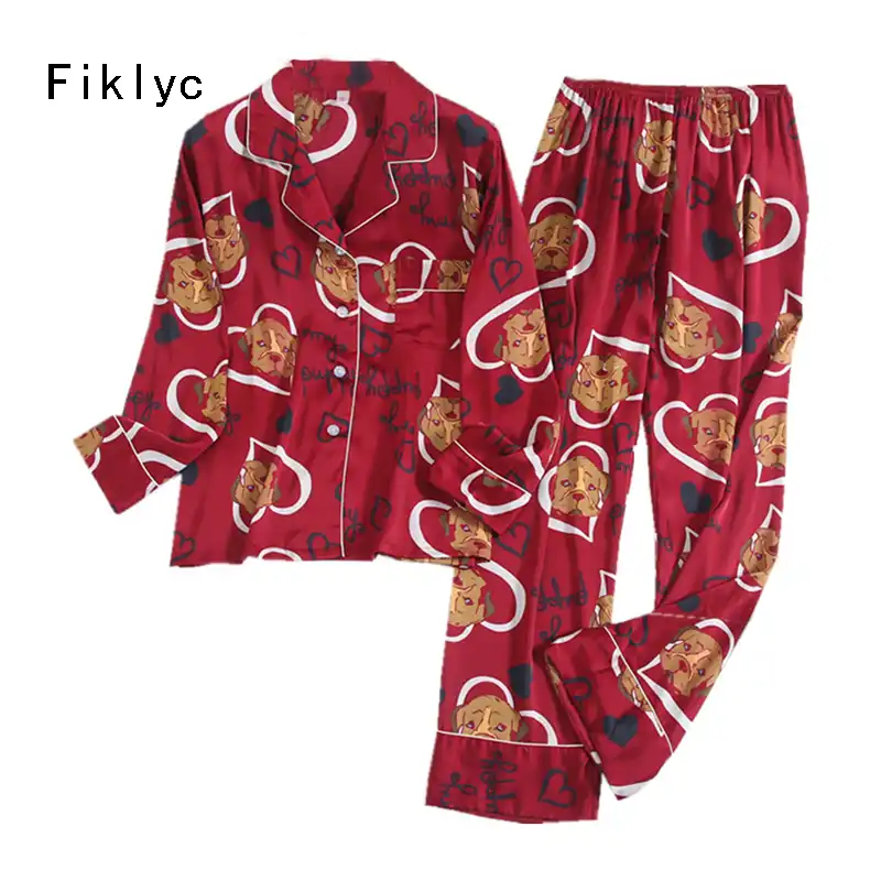 Fiklyc Ondergoed Luxe Cartoon Gedrukt Sexy Vrouwen Lente Pyjama Sets Femme Elegante Pyjama Homewear Sets Satijnen Ontwerp Pyjama Sets Aliexpress