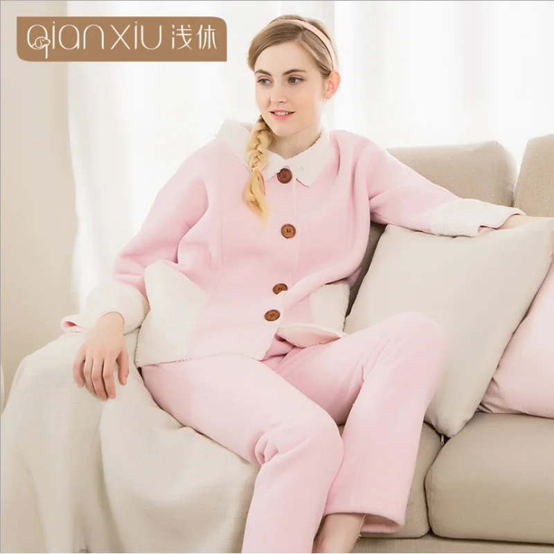 19 Winter Plus Size Pijamas Women Soft Warm Lambs Pajama Sets Female Luxury Sleepwear Suit Female Turn Down Collar Coat Pants Homewear Women Lamb Pajamasfleece Sleepwear Aliexpress