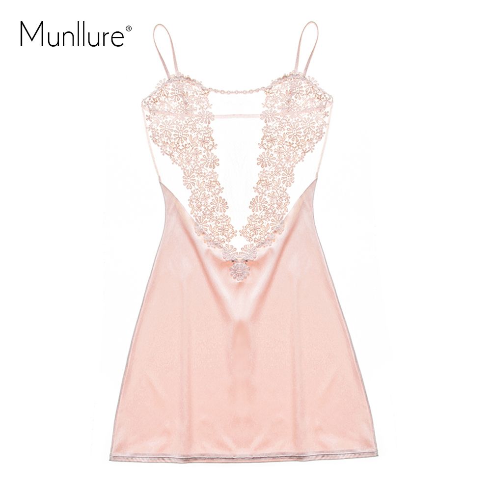 Munllure 17 Satin Solid Sexy Pajamas With Lace Floral Pyjama Femme Fashion Women Nightgown Sleepwear Homewear For Ladies Y Pajama Sets See Thru Lingerie From Gou05 21 13 Dhgate Com