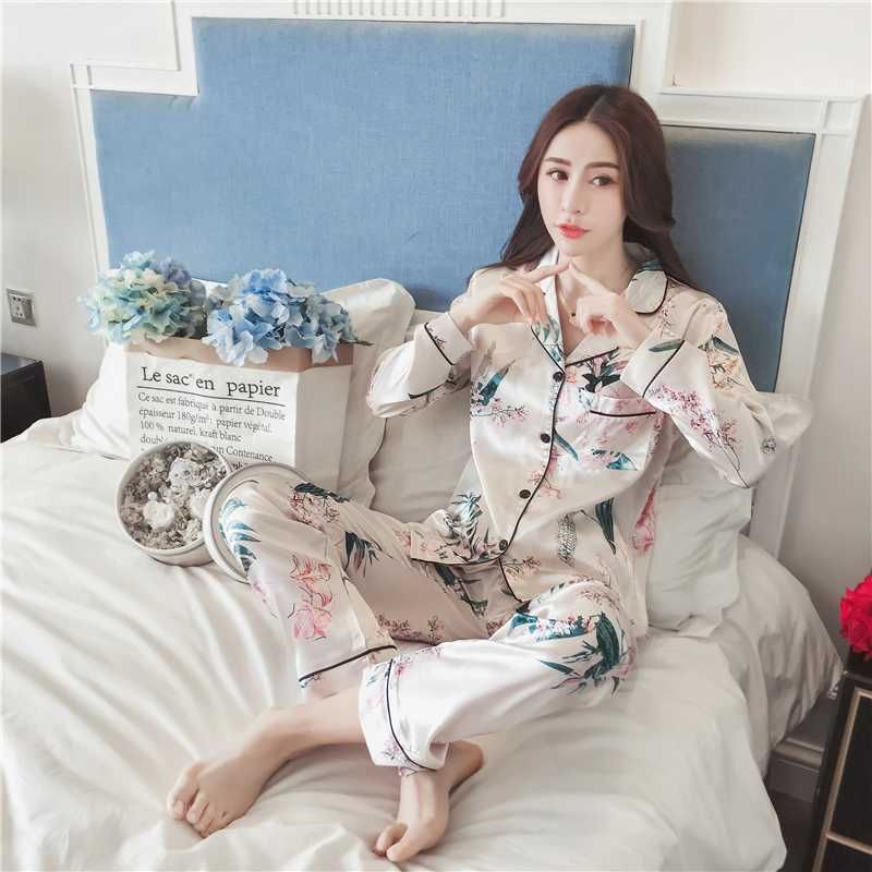 Nouveau Pyjama En Soie Ensembles Pour Femmes De Luxe A Manches Longues Pyjamas Vetements De Nuit Surdimensionne 2 Pieces Bouton Up Pijama Avec Des Sacs Sexy Homewear Aliexpress