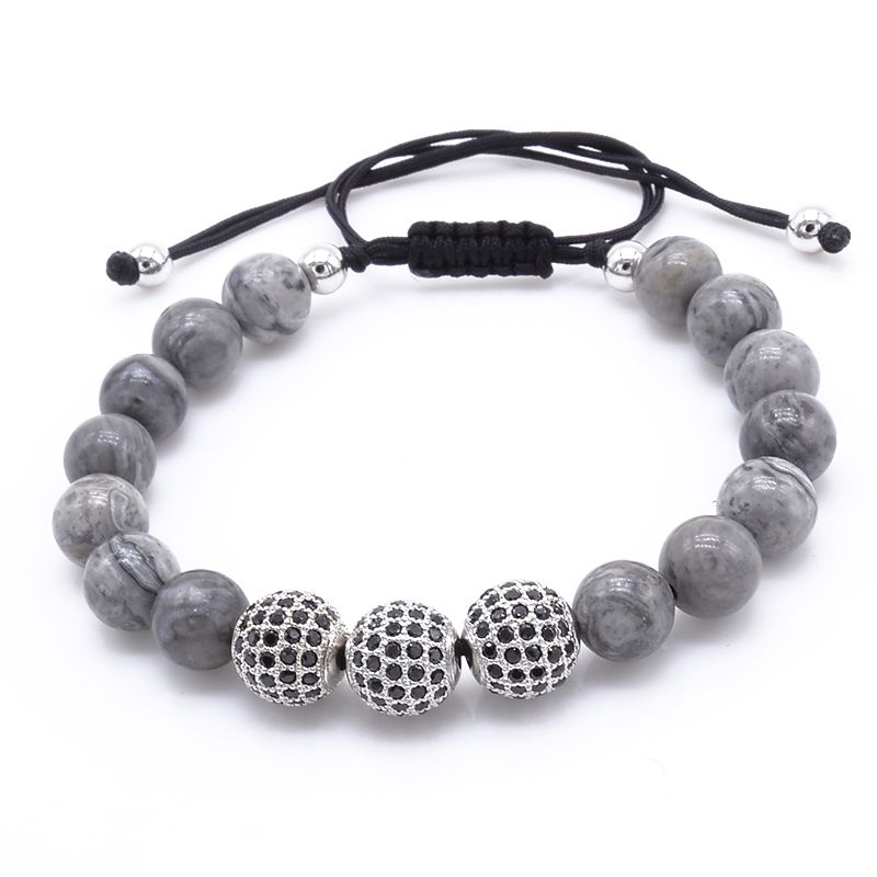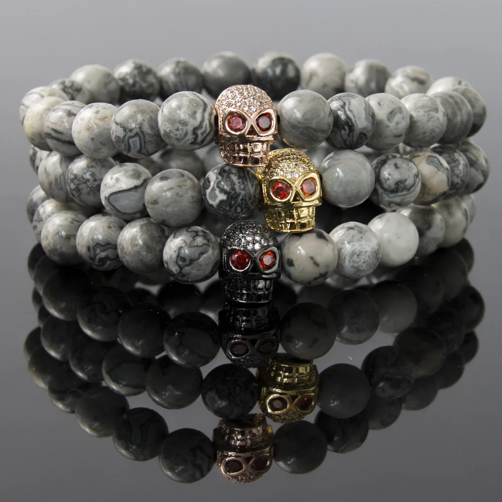 Bracelet En Perles De Pierre Grise Naturelle Pour Hommes Et Femmes Bijou Fait A La Main Bijou A Incrustation Cz Pour Tete De Mort En Zircon Macrame Aliexpress