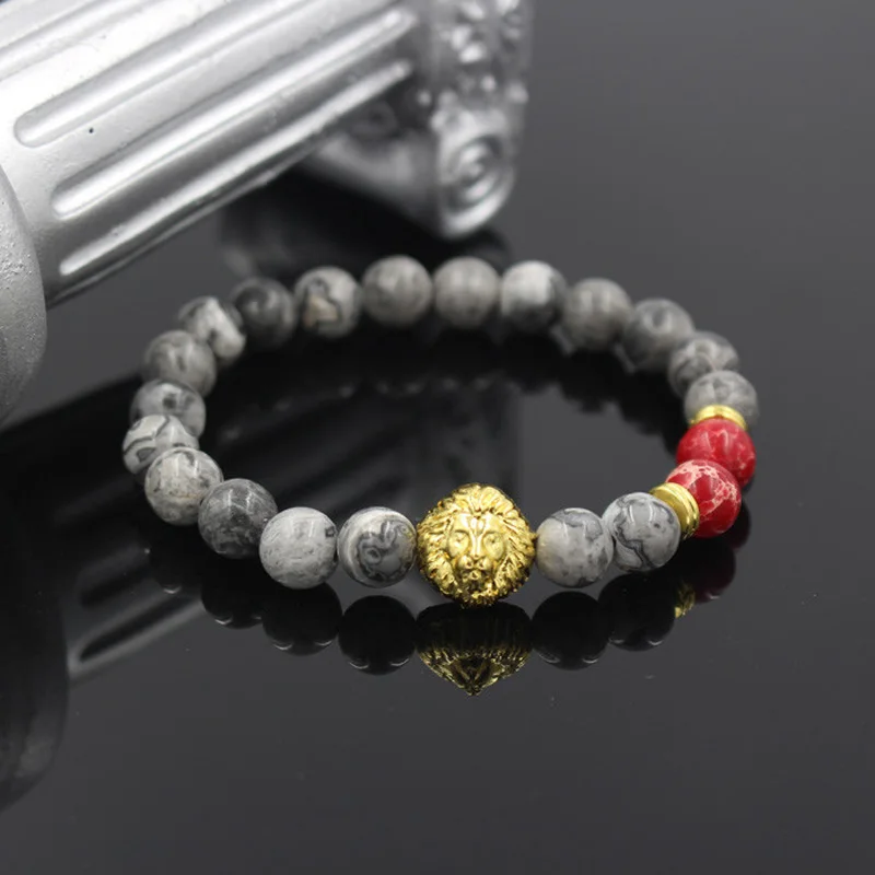 Bracelet A Breloques En Pierre Naturelle Grise Jaspe Et Rouge Regalite Lion Tete De Lion Chaine Elastique Bracelets Pour Femme Bijoux Pour Hommes Aliexpress
