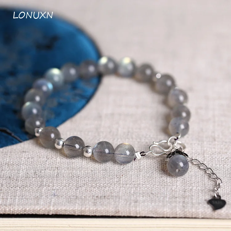 Bracelet Fait Main En Pierre De Lune Grise Naturelle Bijoux Pour Femmes Pierres Semi Precieuses En Cristal Argent Sterling 925 Style Chinois Retro Aliexpress