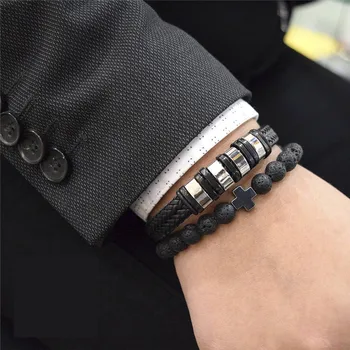 Classique Croix Charme Hommes Bracelet 8mm Naturel Lave Pierre Grise Bracelet A Perles Pour Femmes Hommes Simple Aime Bijoux Cadeau Leather Bag