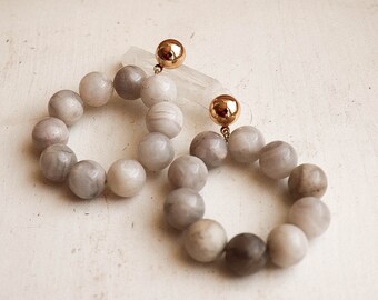 Boucles Creoles Et Pierre Naturelle Grise La Pepite By Pujol
