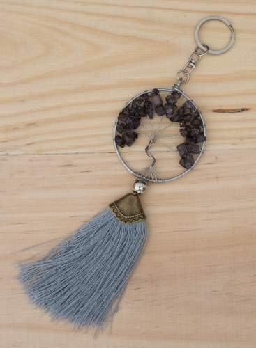 Porte Cles Arbre De Vie Chakra Pierre Naturelle Bijou De Sac Grise