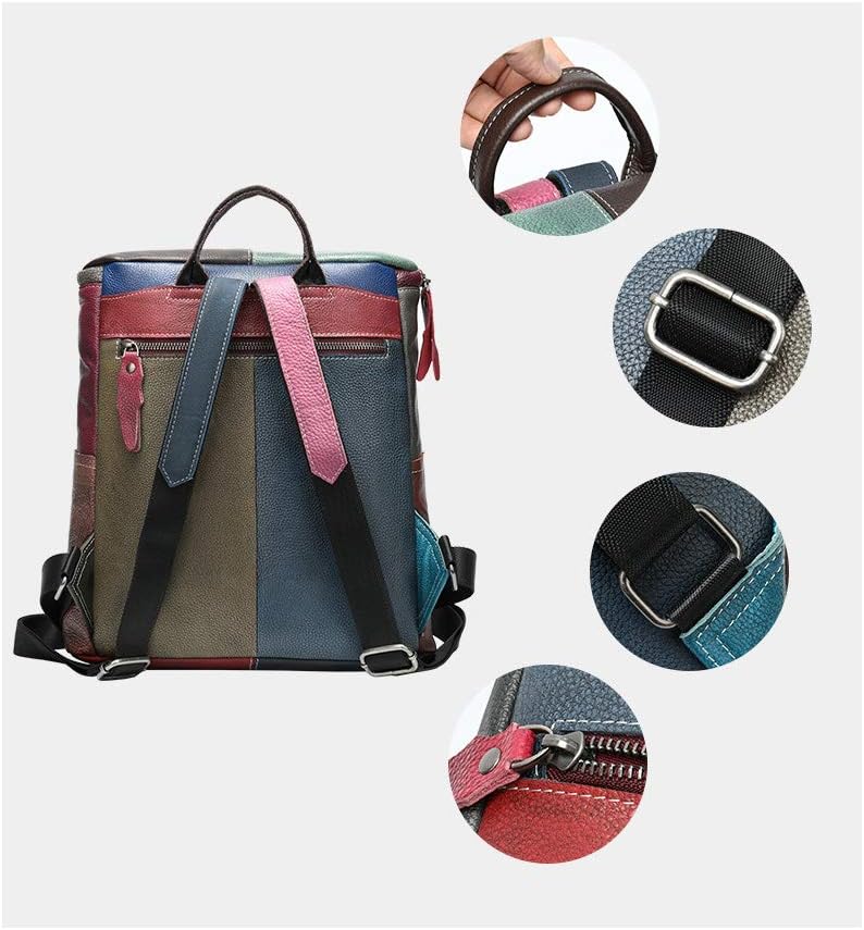 Pour Etudiante Dame Adulte Tangadyl Femme Multicolor Patchwork Sac A Dos Peau De Vaches Sac A Main Grande Capacite Impermeable Antivol Sacs Portes Dos Chaussures Et Sacs