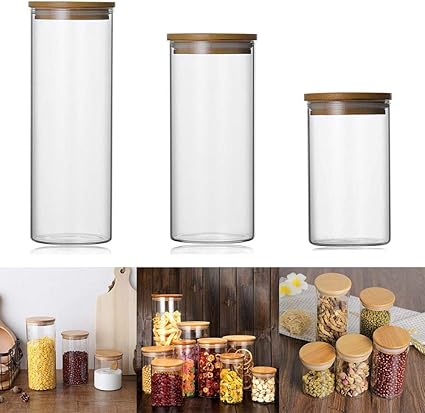 Bestonzon Lot De 3 Bocaux En Verre Avec Couvercle En Bois Transparent Pots Et Bocaux De Conservation Rangement Et Organisation
