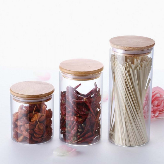 Lot De Bocaux De Stockage En Verre Borosilica Avec Couvercle En Bois Scelles Pour Epices The Cafe Bonbons Recipient Hermetique Aliexpress