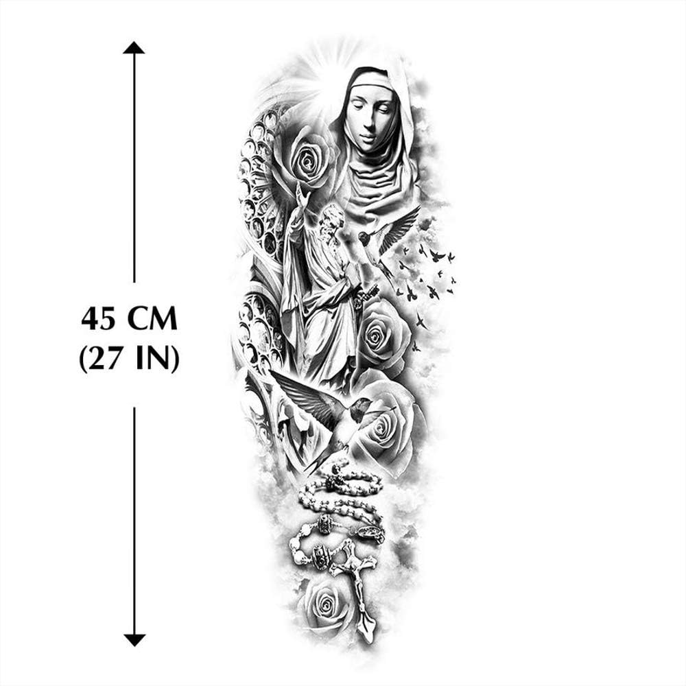 Tatouages Temporaire Manchette Religion Sainte Chapelet Pour Homme Et Femme Tatouage Ephemere Avant Bras Jambe Mollet Bras Nuque 45 X 15 Cm Amazon Fr Beaute Et Parfum