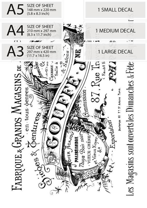 Transfert Deau Imprimer Autocollant Pour Meubles Bois Ou Etsy Print Decals French Vintage Shabby Chic Stencils