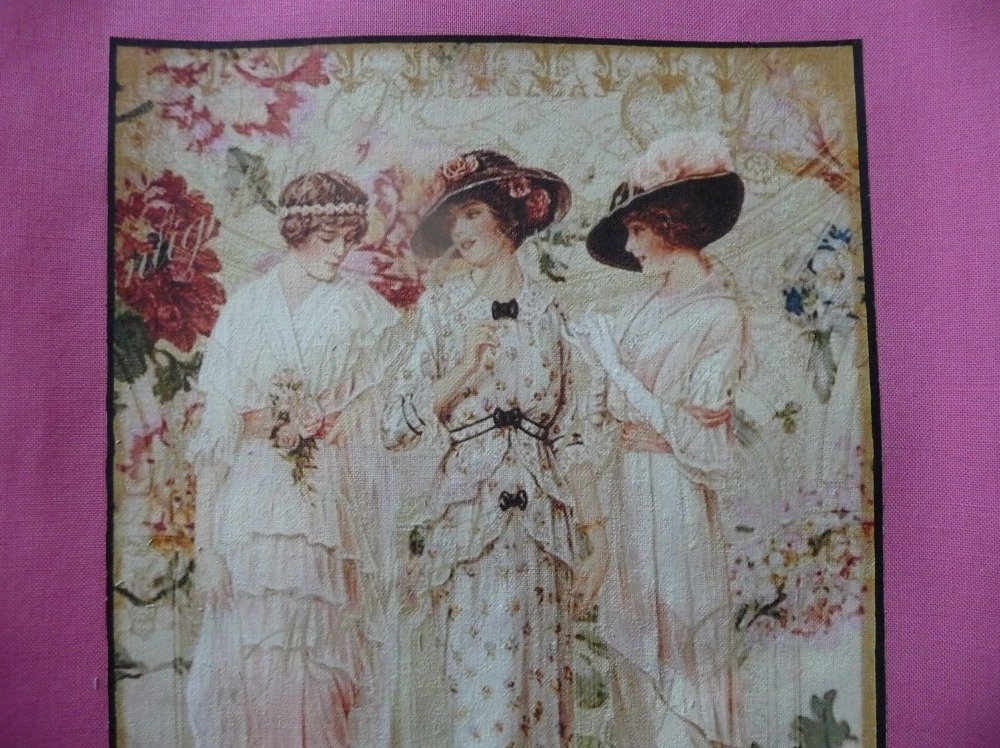 Transfert Image Retro Illustration Shabby 3 Gracieuses Jeunes Femmes Elegantes Et Romantiques Annees Folles Transferee Sur Tissu Coton Rose Un Grand Marche