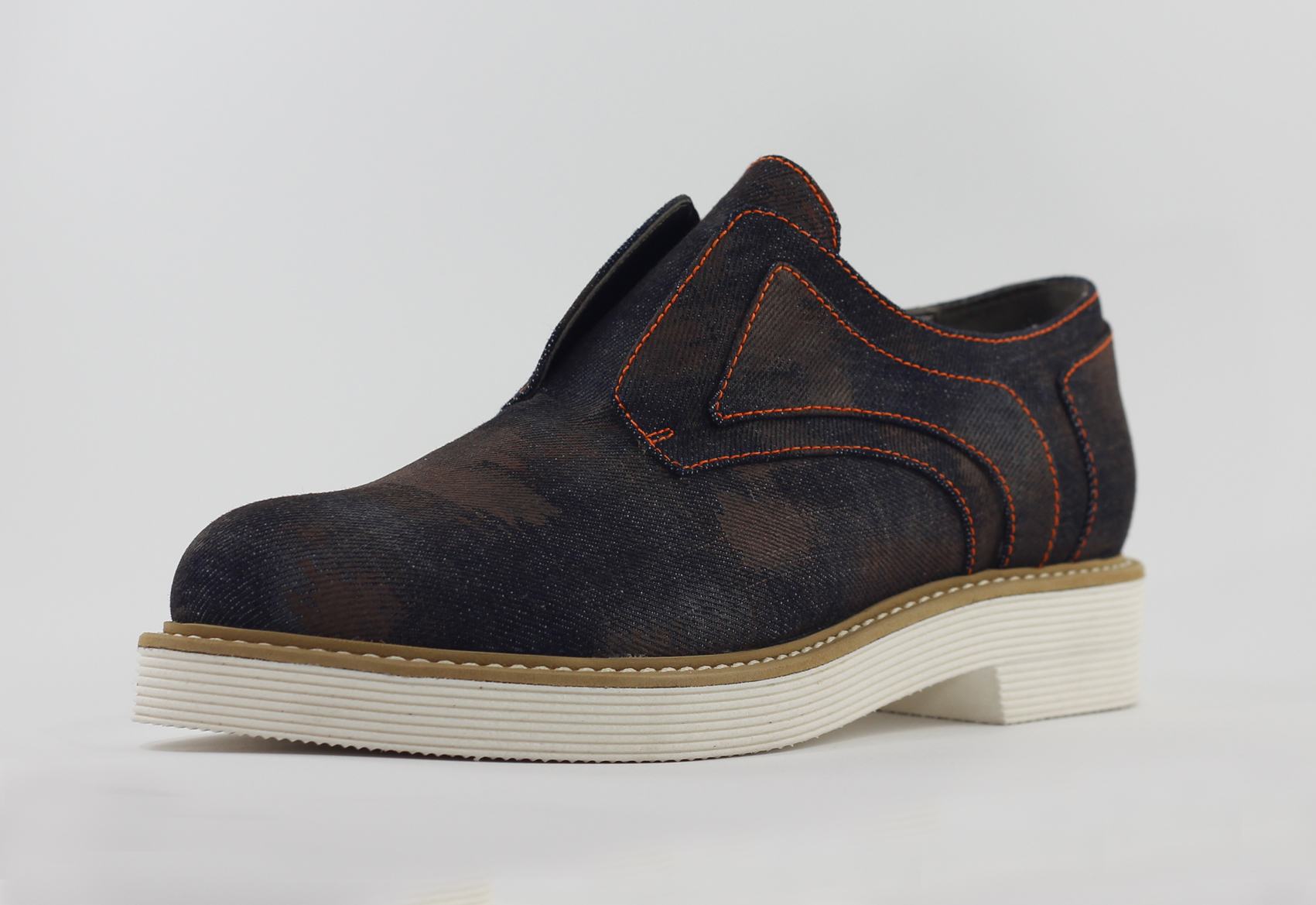 Mode Femme Chaussures Chaussures Plates Derby Vegan Femme Urban Jean Brut Taches Oranges
