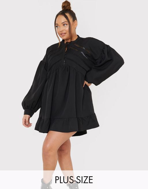 In The Style Plus X Lorna Luxe Robe Courte Babydoll Boutonnee Avec Manches Volumineuses Noir Fodesep