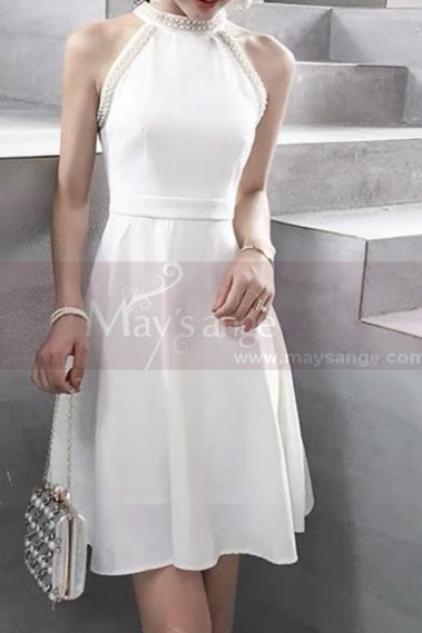 Robe Ceremonie Courte Mariage De Luxe Col Perle Mousseline Ref M1299 Robes De Mariee
