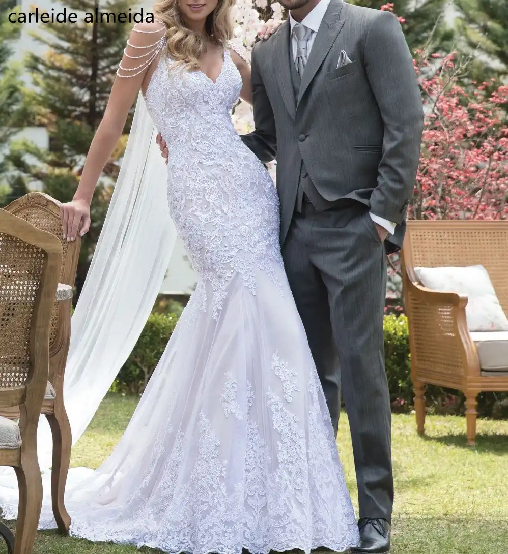 Robe De Mariee Sirene En Dentelle Robe De Mariee Elegante Avec Perles Bretelles Spaghetti Aliexpress