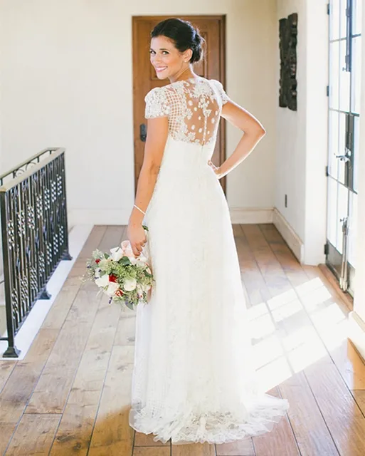 Robes De Mariee Elegantes 16 Une Ligne De Dentelle Encolure Dentelle Sans Dos Appliques De The