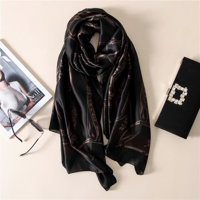 Foulards Echarpe Soie Luxe Marquemode Noir Chaine Femme Bandana Impression Femmes Sjaal Noir Achat Vente Echarpe Foulard Soldes Sur Cdiscount Des Le Janvier Cdiscount